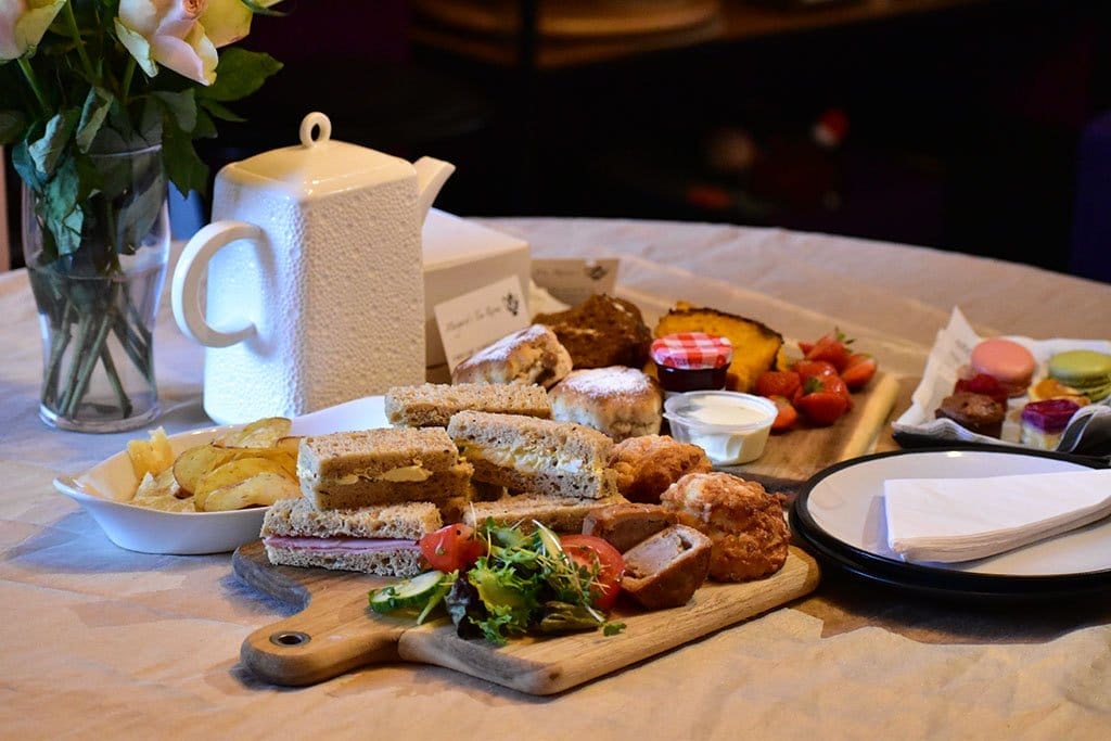Back in the days of lockdown we tried an Afternoon Tea 2Go from Margaret’s (hence the photos below were taken at our home, not inside!). It was intricately packed together in tiered boxes with a floral wrapped finish, and handwritten instructions for how long we should steep each tea. That was a lovely touch. We went for the Lavender Macaron and Mucky Wellies teas after Des gave some helpful recommendations – it was refreshing to try something a little different to the norm.
